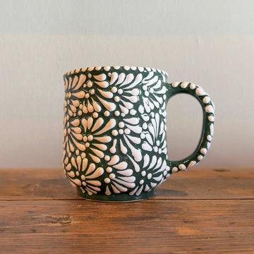 Handcrafted Mexican Talavera Mug – Green Floral This handcrafted Mexican talavera jarrito celebrates nature through...