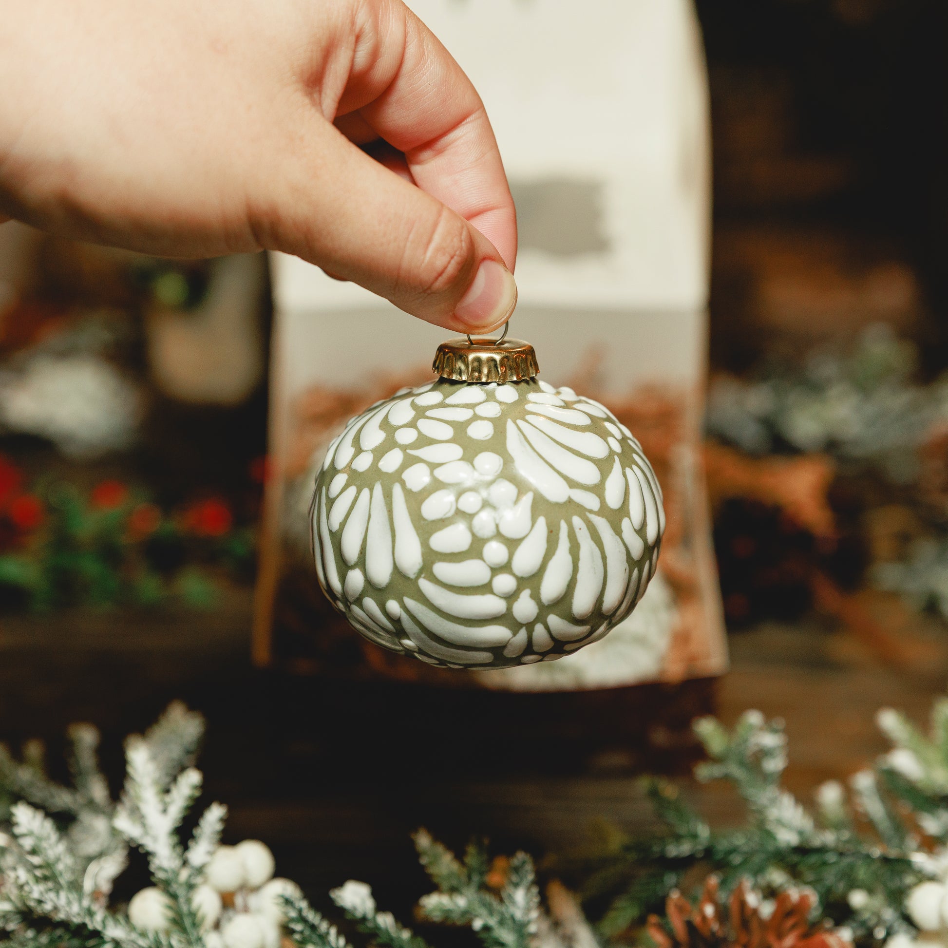 Bring the magic of Mexican craftsmanship to your holiday season with our handmade Talavera ornaments in a rich olive and white finish. Each piece is carefully crafted and painted by skilled artisans in Mexico, making every ornament truly one of a kind.