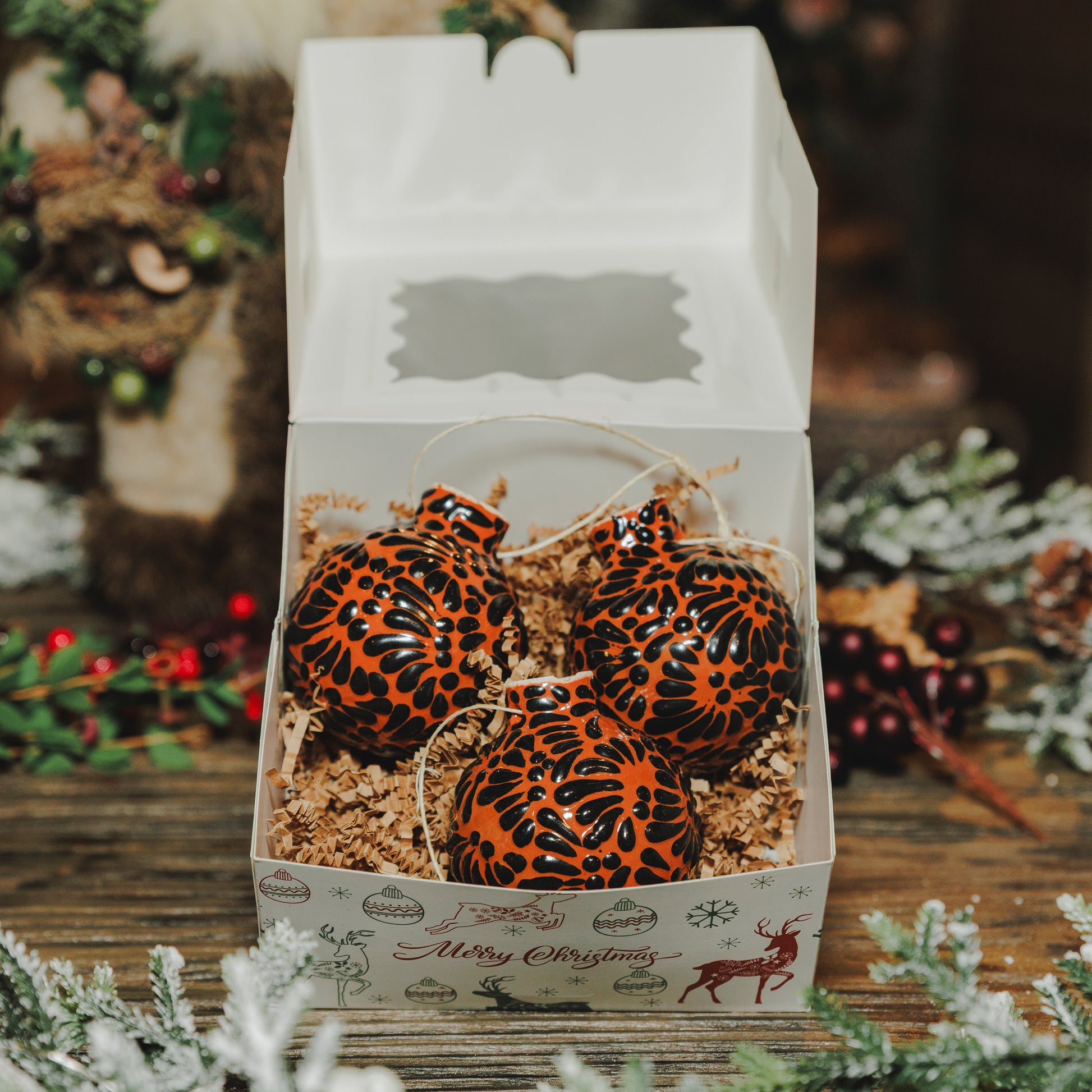 This set of 3 small ornaments comes beautifully packaged in a festive holiday box—perfect for gifting or elevating your own Christmas décor with a touch of vibrant, authentic artistry.