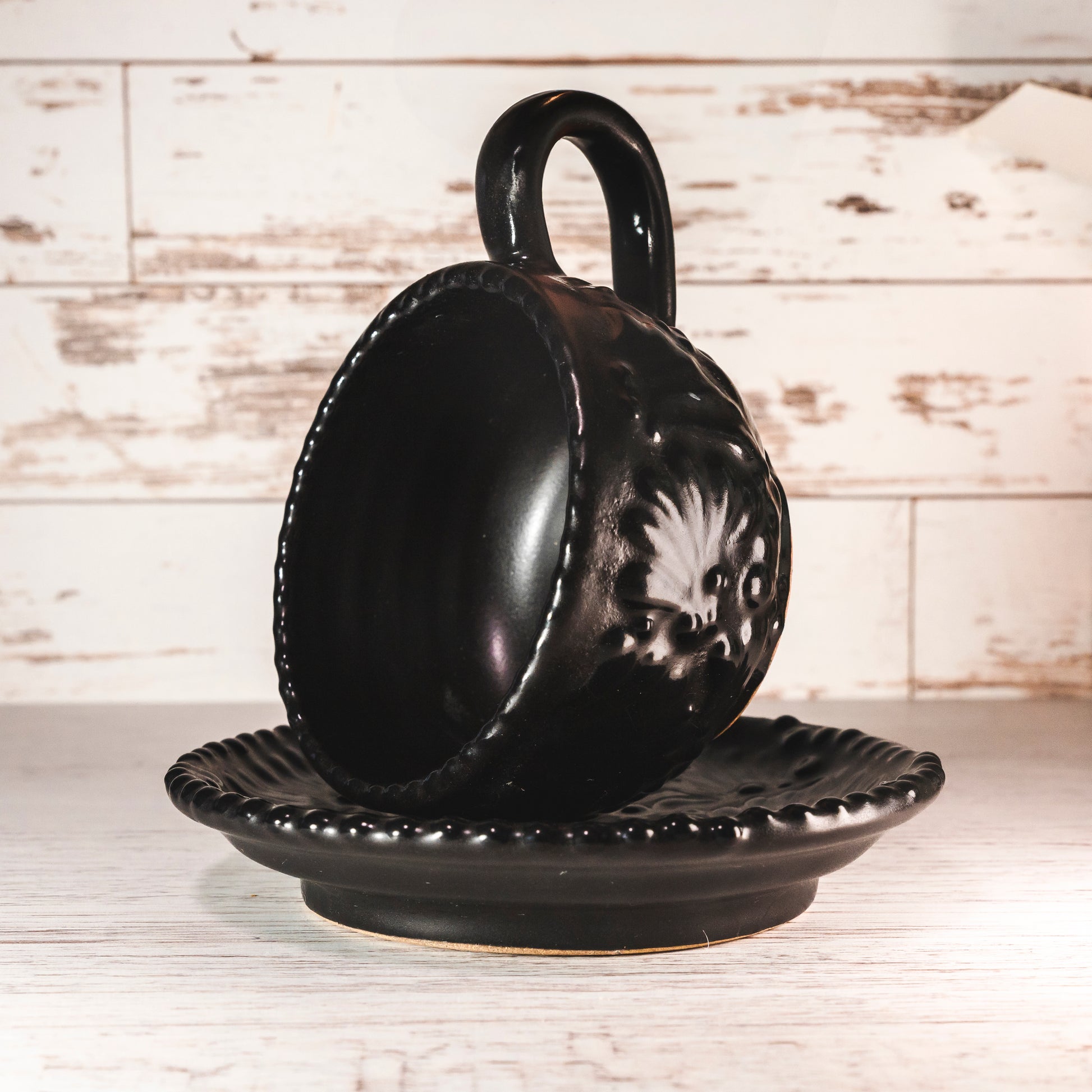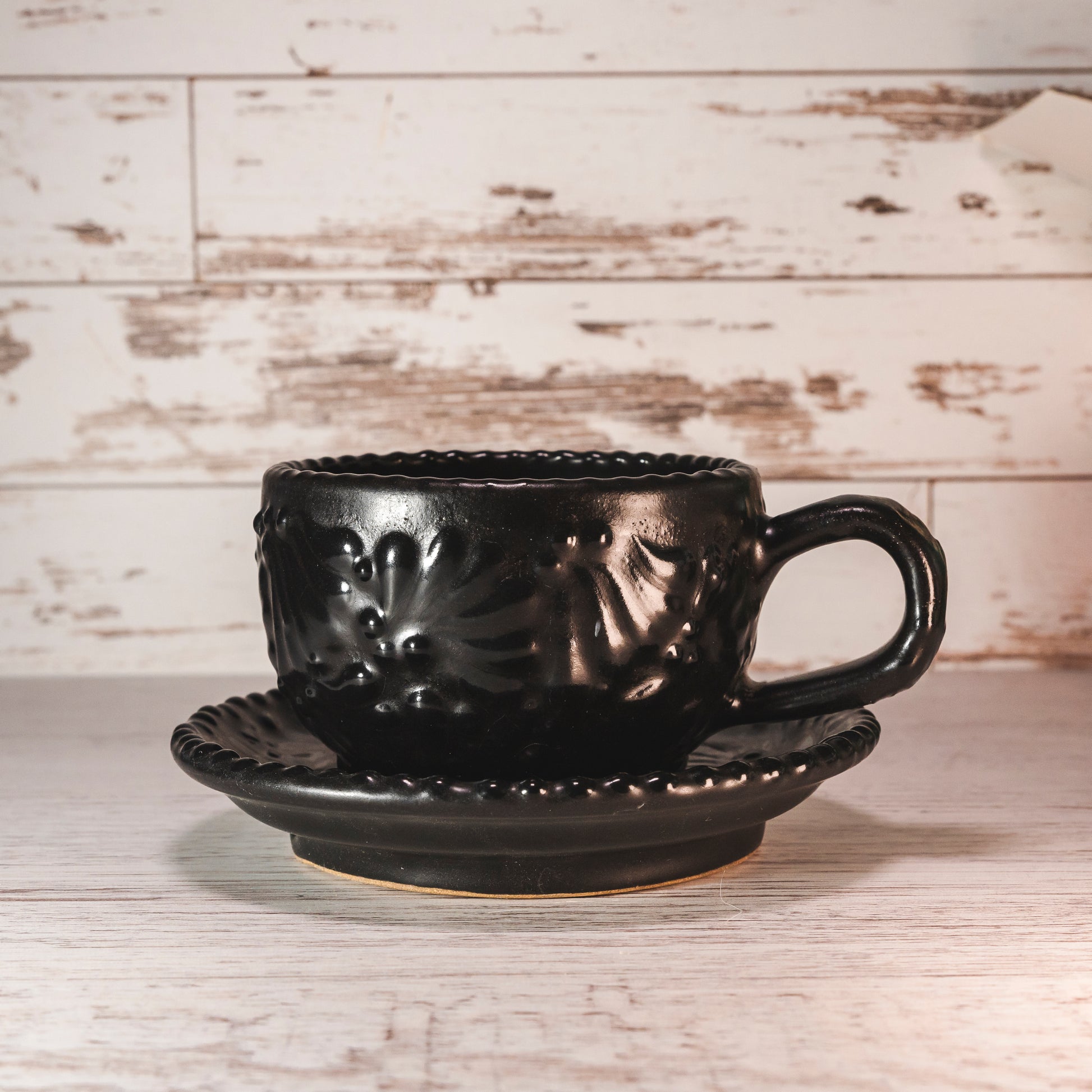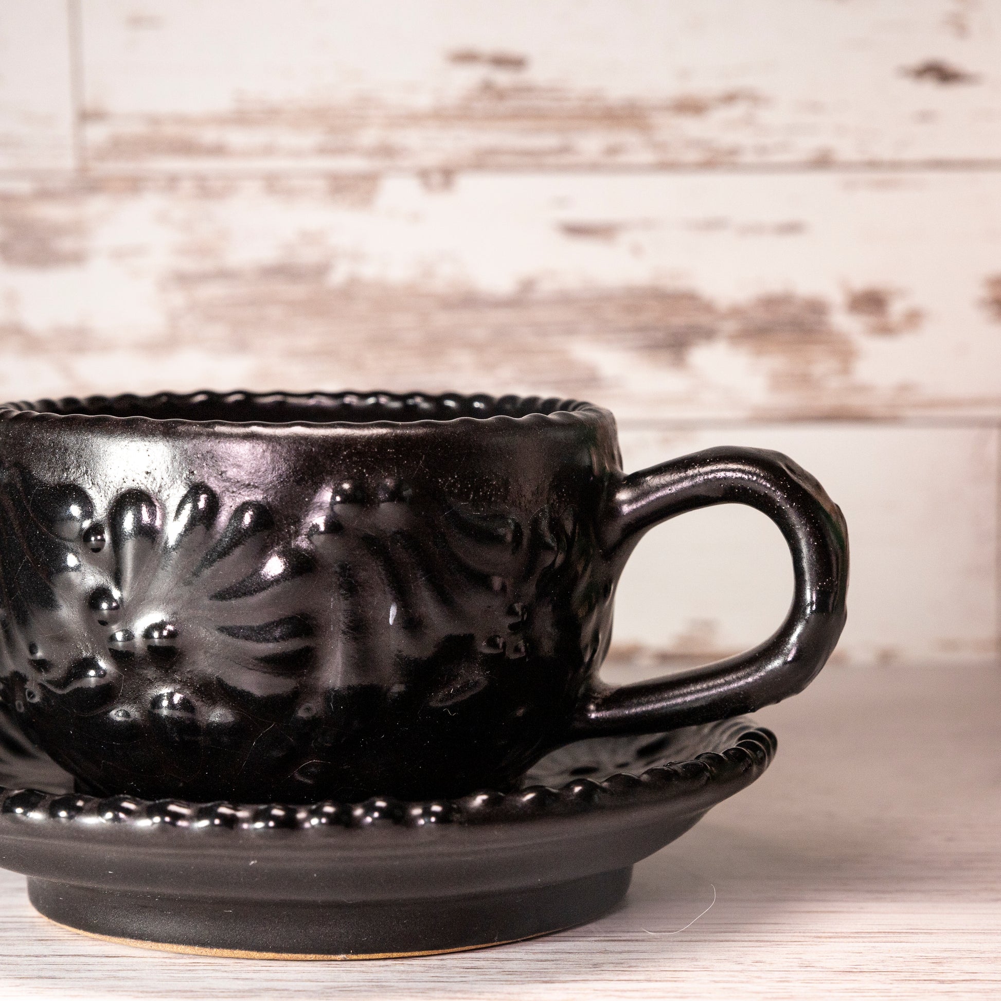 Handcrafted by talented artisans, this mug & plate is the result of exquisite elegance and brilliant artwork: a texturized companion for your favorite coffee, tea or your new creation!