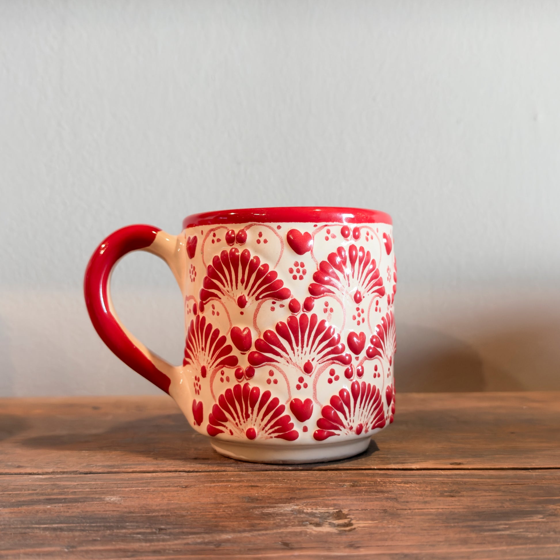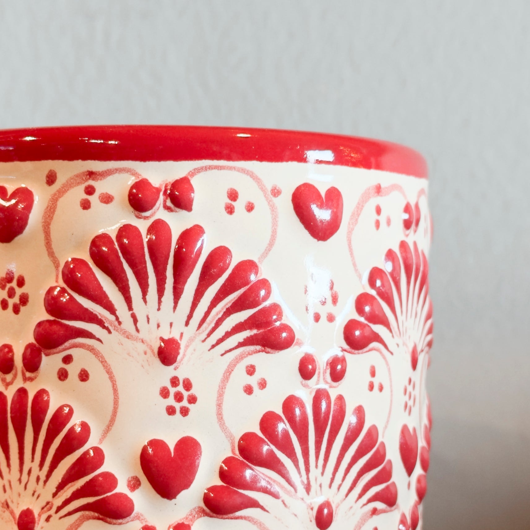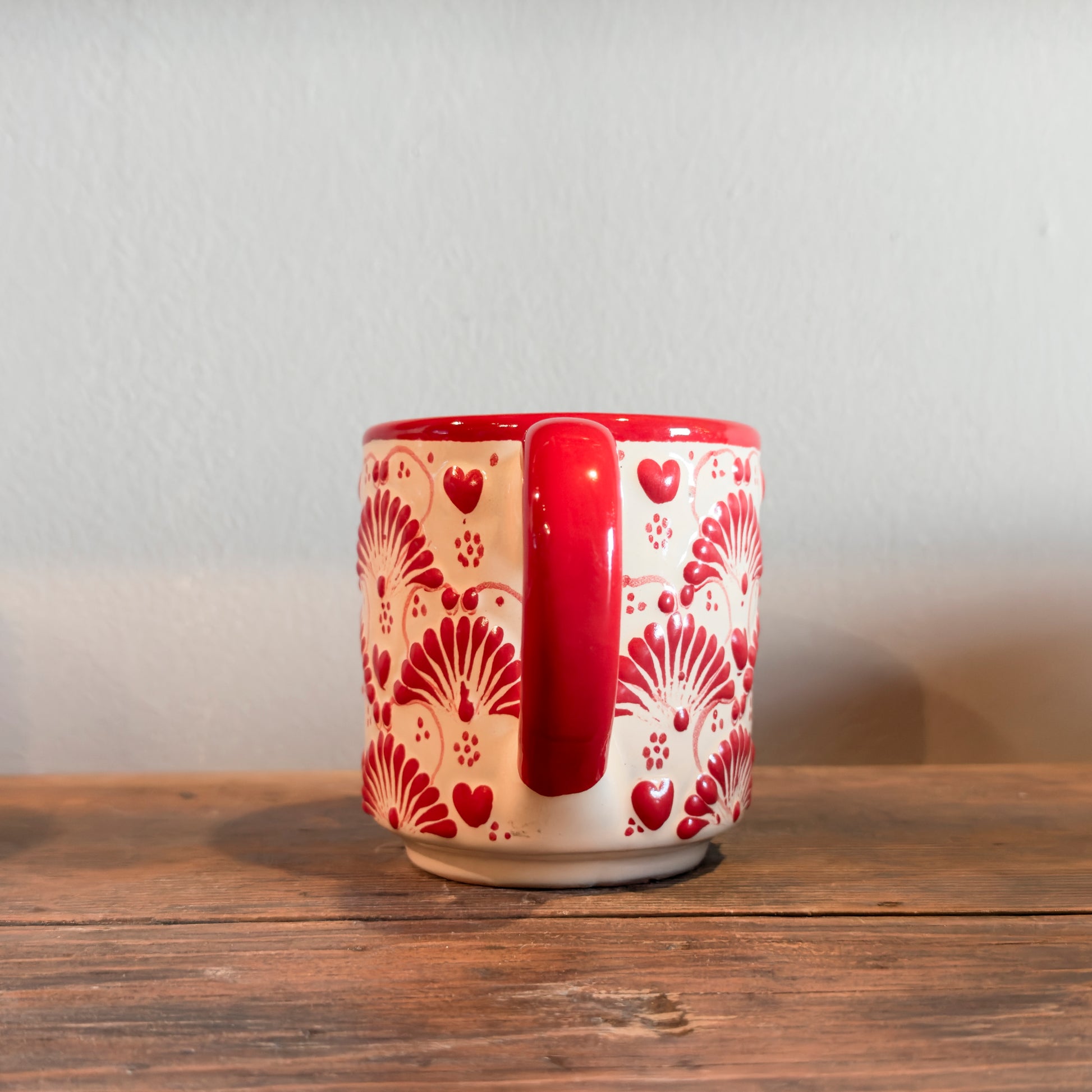 Handcrafted and hand-painted in Mexico by skilled artisans, this Mexican heart lechero features charming red heart and floral motifs that celebrate love, warmth, and tradition.
