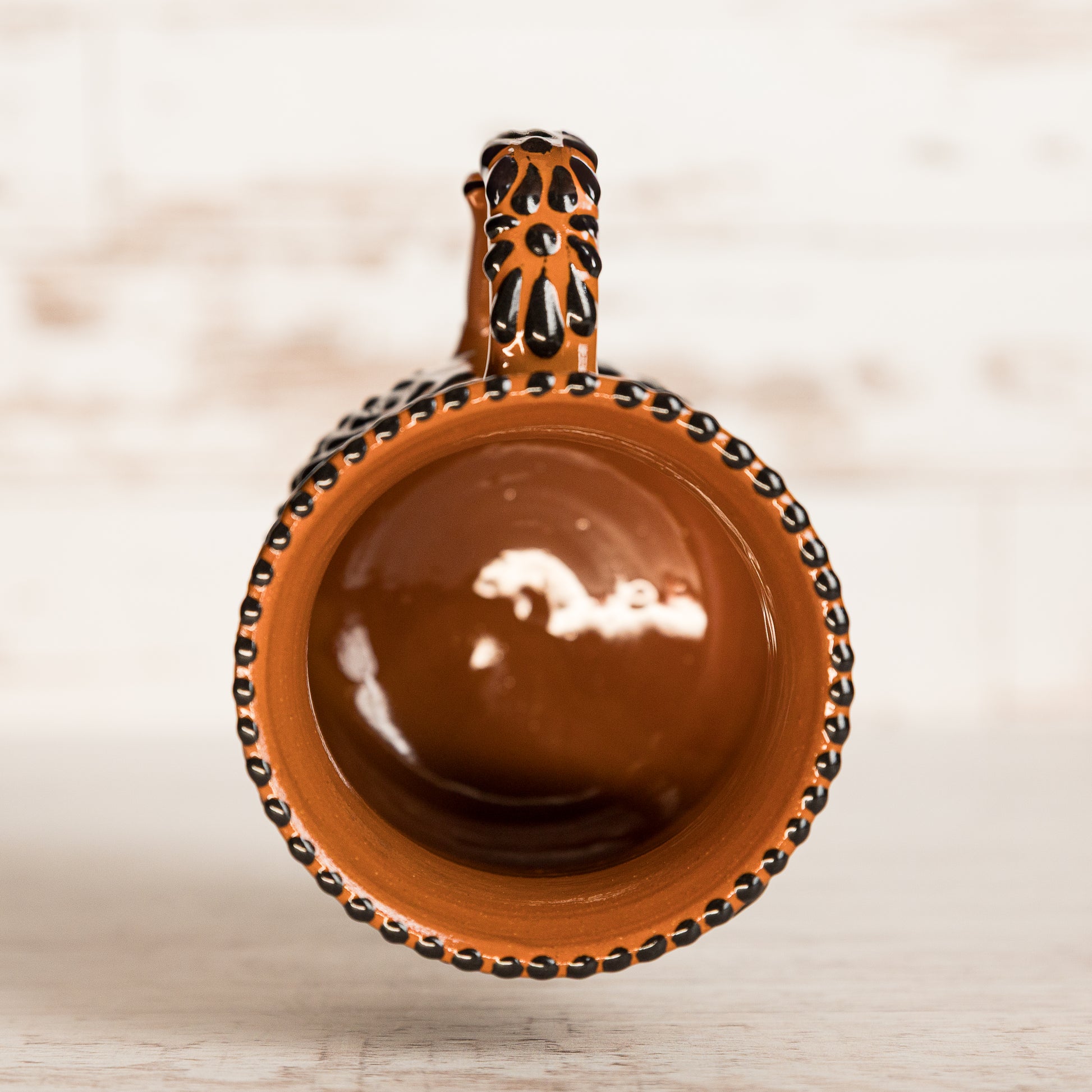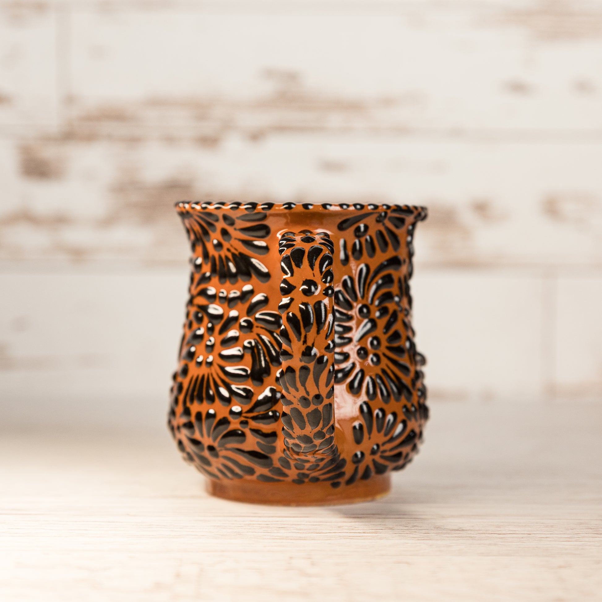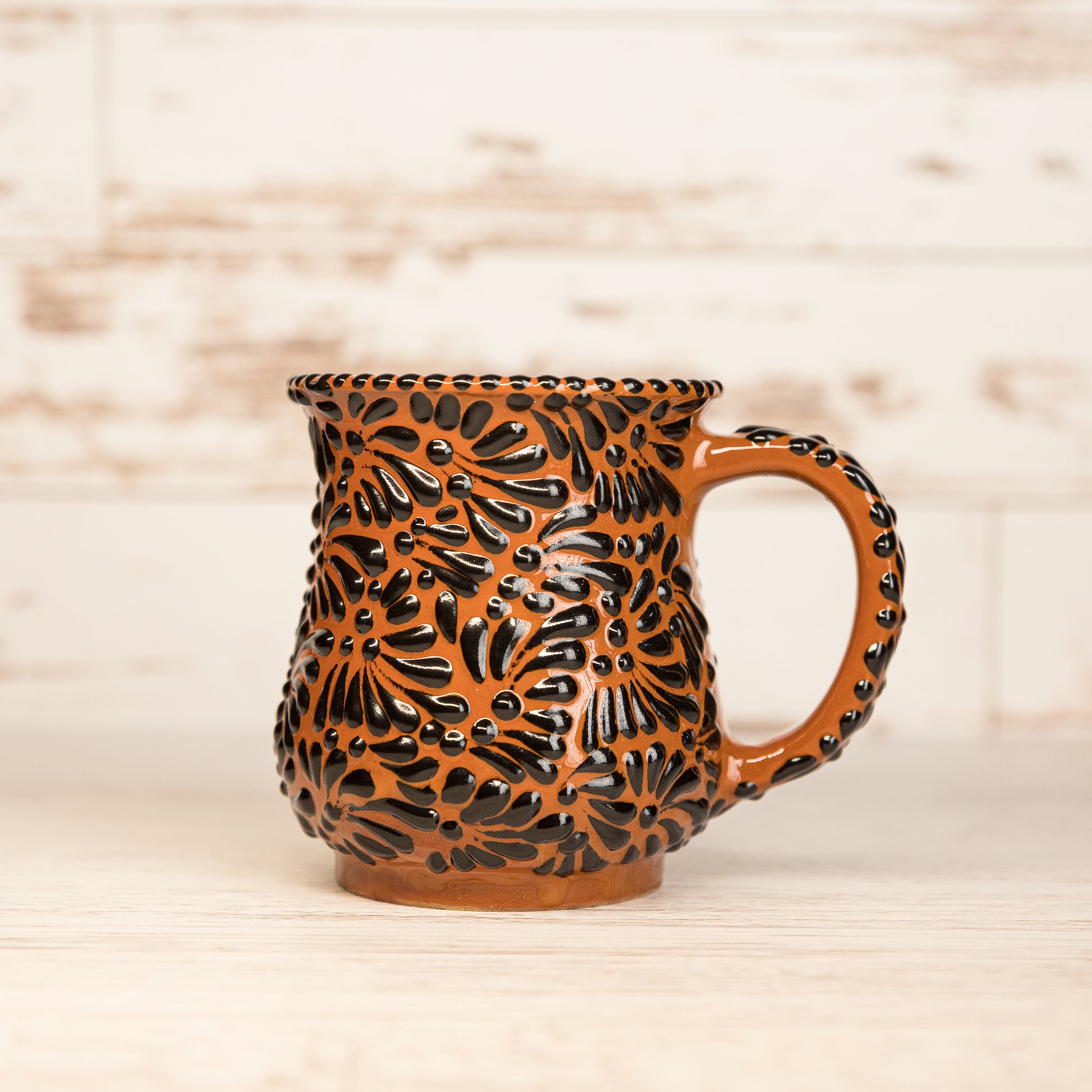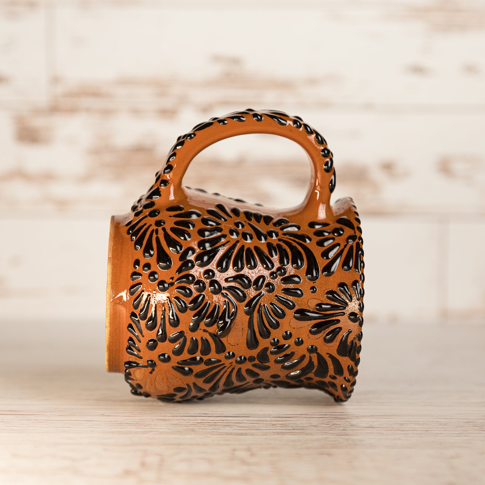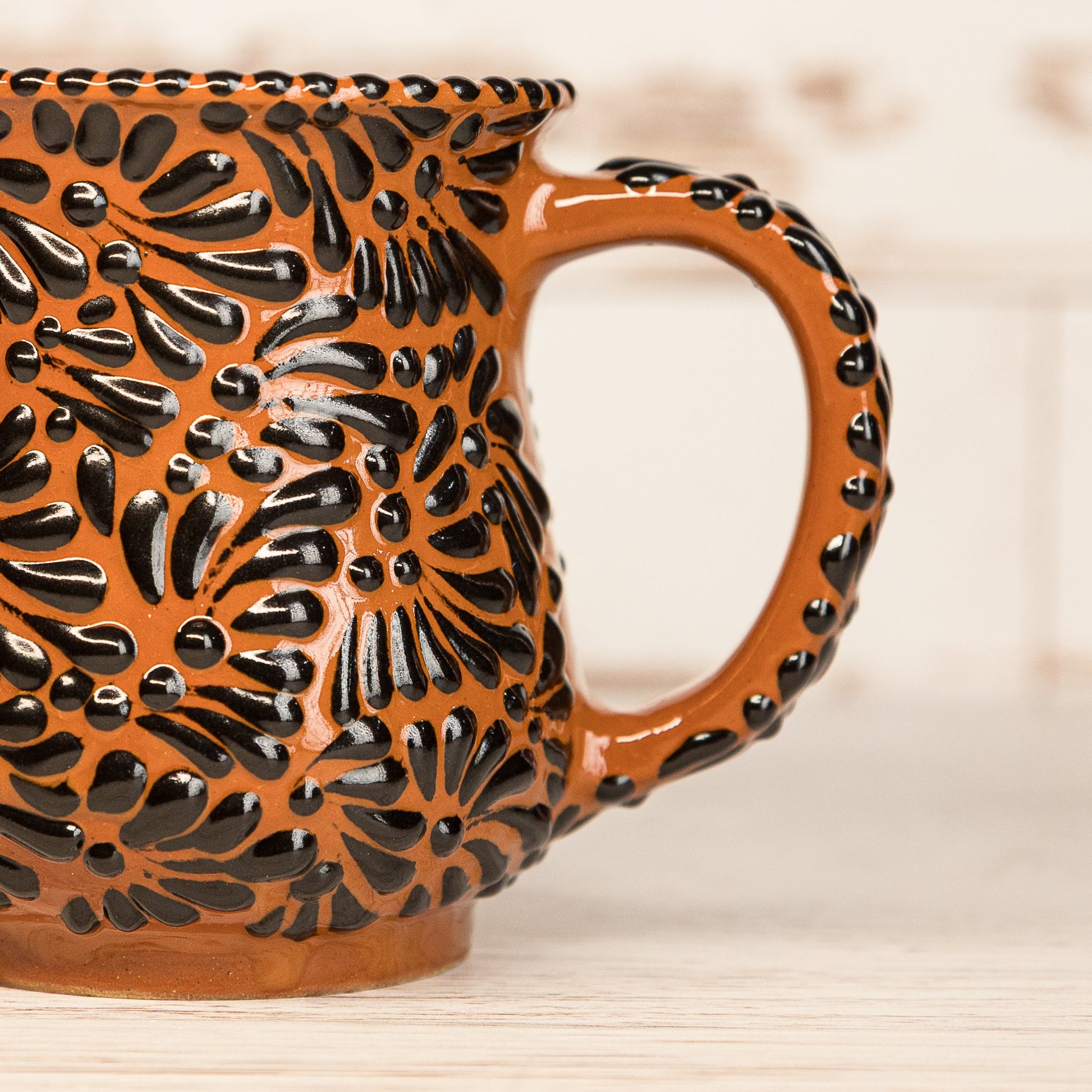 Expert hands meticulously craft the designs and intricate details, ensuring that no two pieces ever have the exact same patterns or artwork. The subtle imprints of fingers and distinctive Freckles on the mug highlight its uniqueness and charm. This distinctive artistry employs this method by layering natural, lead-free paint onto each mug by hand. When subjected to a second firing, technique makes the painted designs rise, offering a glossy texture that stands out beautifully against the stoneware's gloss finish.